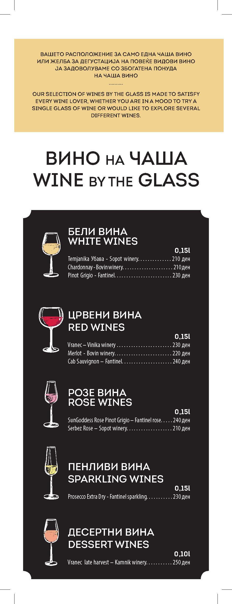 Наша желба е да ве запознаме со светот на виното и да ве приближиме до хедонистичкиот животен стил што го носи. Во нашата супермаркет винотека се присутни над 250 домашни и странски вински етикети, достапни за дегустација и ваше целосно уживање!